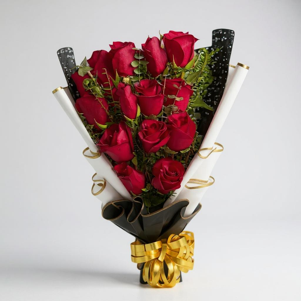 15 rosas rojas escalonadas