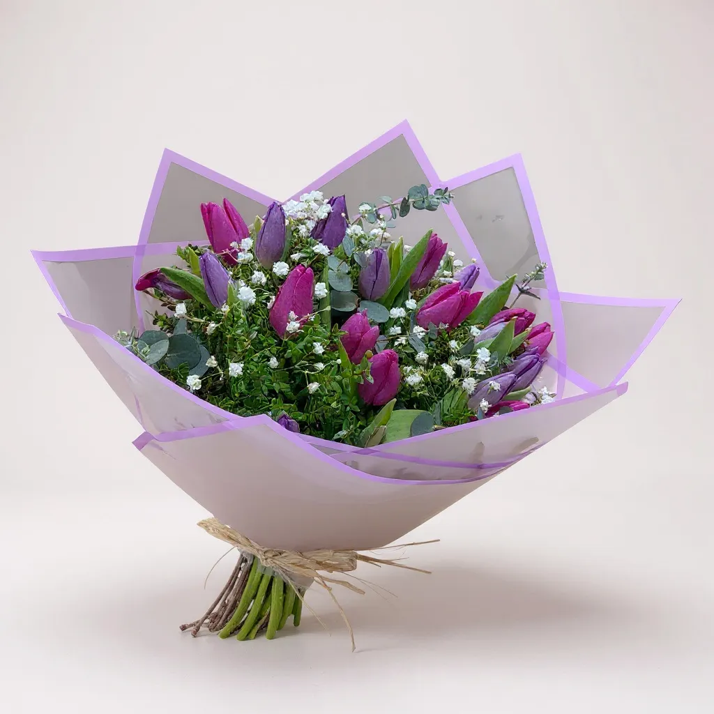 20 tulipanes rosados y morados a la redonda